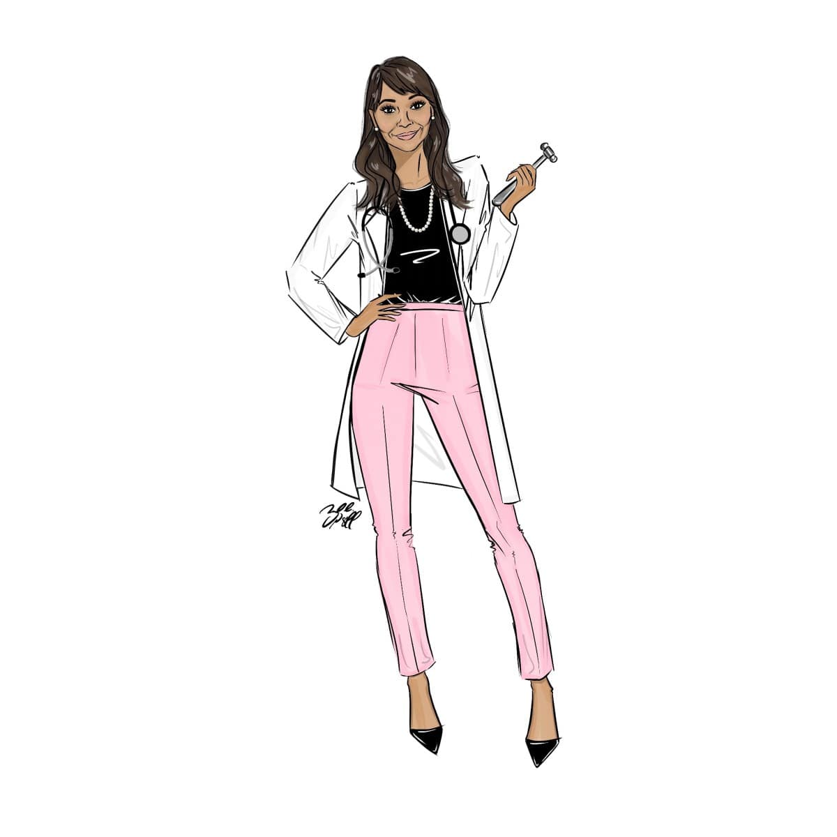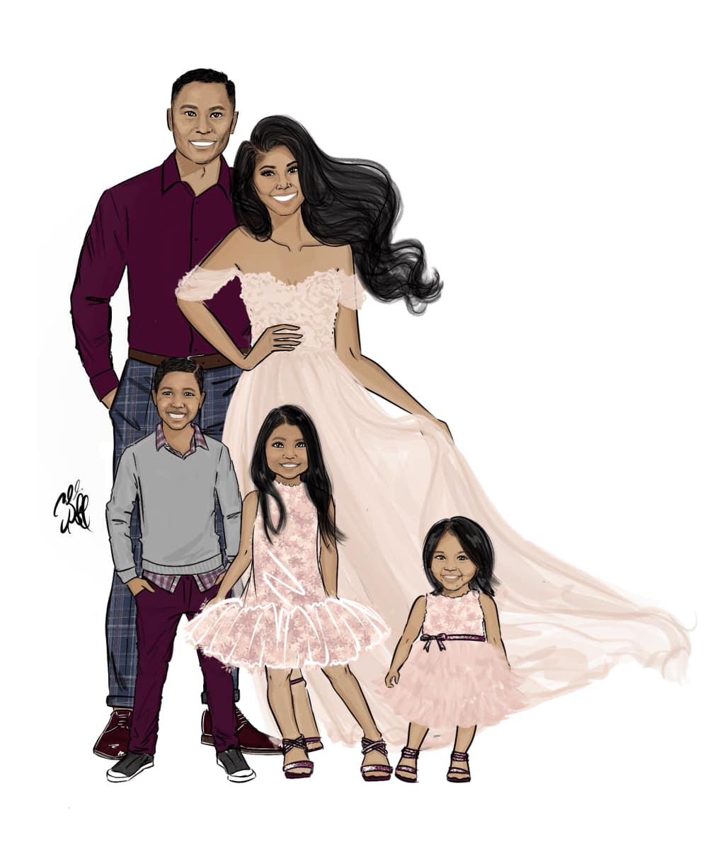 “Realizing I had a knack for capturing likenesses was, and continues to be, the biggest gift as it allows me to create truly one-of-a-kind works of art for my clients. I pour my heart, and many hours, into every illustration in order to capture an accurate, yet stylized essence of each subject with regard to their features and characteristics, while maintaining my signature hand-drawn ‘fashion illustration’ style.“