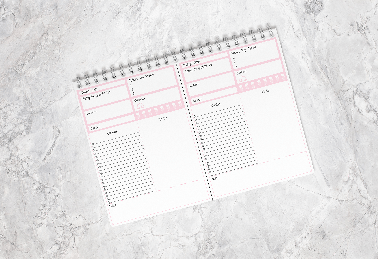 The Lifestyle Planner is 20cm x 25cm. Hard Laminate Cover. Spiral Bound.