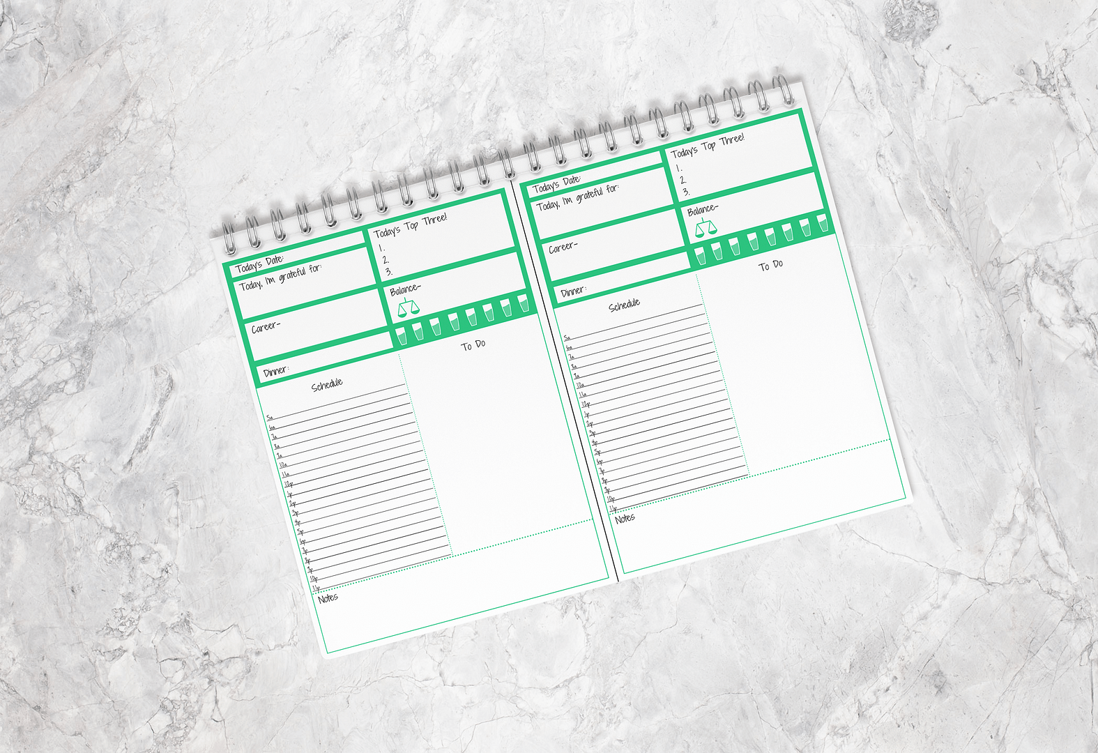 The Lifestyle Planner is 20cm x 25cm. Hard Laminate Cover. Spiral Bound.